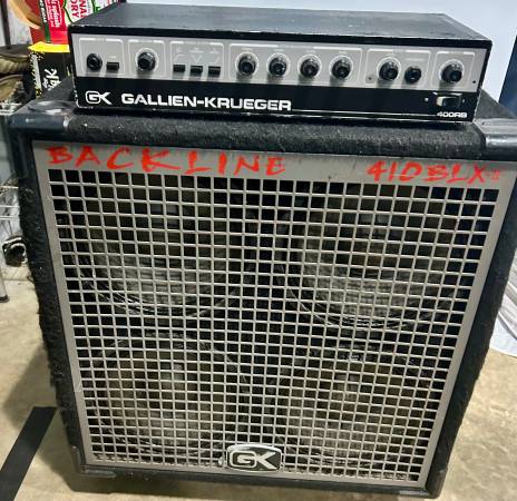 Gallien - Kruger 400RB Head & Backline 4/10 Cabinet GK bass head and cabinet, great sounding combination at an affordable price. Everything works as it should. Cabinet needs a caster replacement.