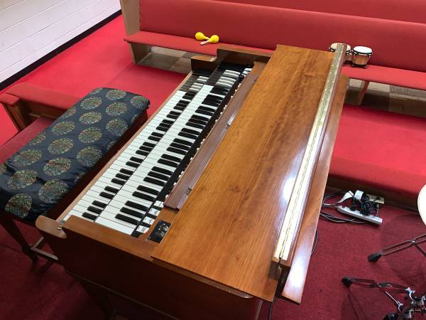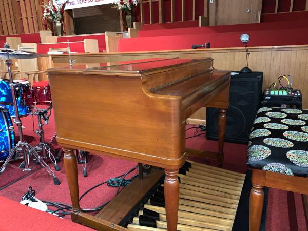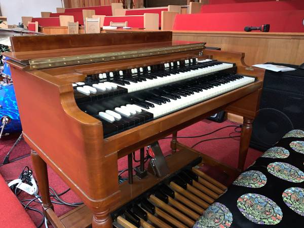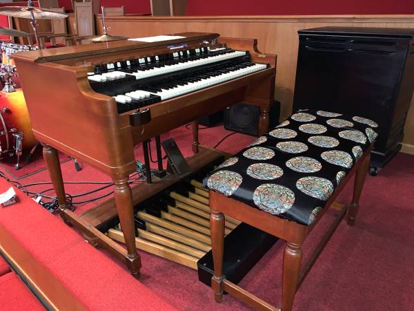 Hammond B3 with matching pedals and original bench…refurbished preamp and great tones. Setup for leslie 122. (leslie is not included) Sturdy cabinet.