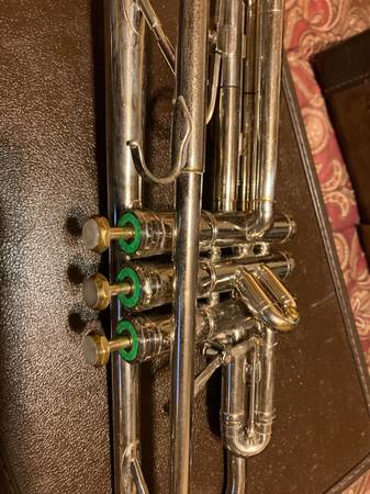 None of the trumpets that I sell need any work to be playable. They all have been gone over, been ultra-sonic cleaned and repairs made accordingly. I DON'T SELL ANYTHING THAT DOESN'T PLAY. Prices are based on many factors but mostly on what level of quality the horn is. ( student, intermediate, or pro level) Some older horns were considered a student horn back in the day but are considered an intermediate with today's standards. I sell a lot of Olds Ambassadors which were a student horn 50 years ago but are a high end intermediate today. Many pro players use the Ambassador as a back up horn. Next price factor is cosmetics. If a horn has very few dings and the lacquer is bad, I will strip the old lacquer off, buff the horn, and re-lacquer it or leave it bare brass. Relacquer adds $100 to the horn's price. The result is a brand new looking horn that looks great and plays great. If there are too many unsightly dents I will sell the horn as-is which reduces the price by about $100. It will play just as good as the previous horn but isn't as appealing to the eye. And then there is the prestine horn, which are very scarce. This horn is 50+ years old and sat in a closet most of it's life. These horns bring much more money, being all original. Expect to pay much more for this one. Of course each horn will be priced on an individual basis.