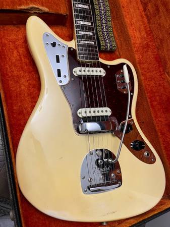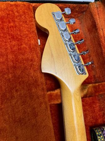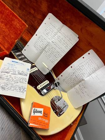 All original and in excellent shape, original hardcase with original owners strap and his setlists and written lyrics. Has bridge cover and tremelo arm as well. Bound neck block inlay, plays and sounds great. All switches and pots work as they should.