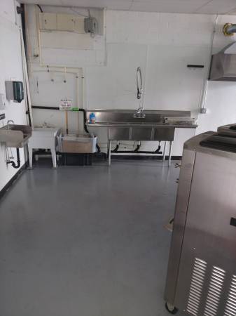 WOOD FLOORS KITCHEN,3 BOWL SINK, GREASE TRAP HAND WASH SINK, WALK IN FREEZER AND RESTURANT APPROVED PERMITS.