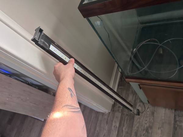 60 gallon tank with light and lid and stand asking $150 or best offer and must pickup. Text to set up pickup