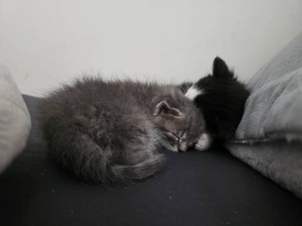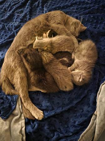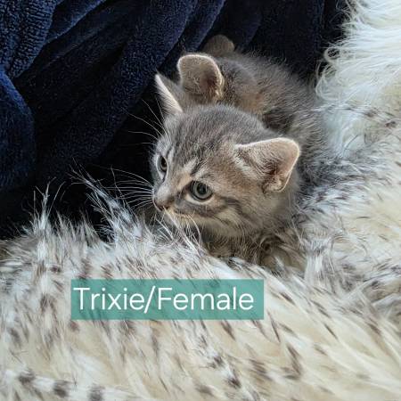 These little clowns just turned 8 weeks old! All 5 kittens have been dewormed twice, are litter trained, are eating solid food and are ready to go to their forever homes for a small rehoming fee of 50 dollars to cover the cost of their care so far. They are playful and have been exposed the children and a small dog.