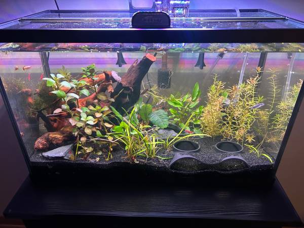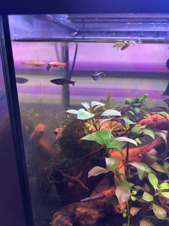 You won’t need to buy a single thing. Open to trades also!! Brand new aquariums. Less than a month old (10 gal is cycled with used media). Aquascaped fully with live plants, rocks and driftwood. Comes with hygger light, fluval 5-20 filter, marina filter , azoo filter (2.5 gal), multiple extra sponge filters, heaters, bubbler, aquascape tools, 2 gravel vacs, api test kit, secham products, pellets, root tabs, wafers and MUCH more. Pm for what’s in the tank. 150$