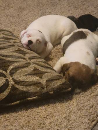 7wks old they been wormed first shots ready for homes 1male white and two spots 1 female.