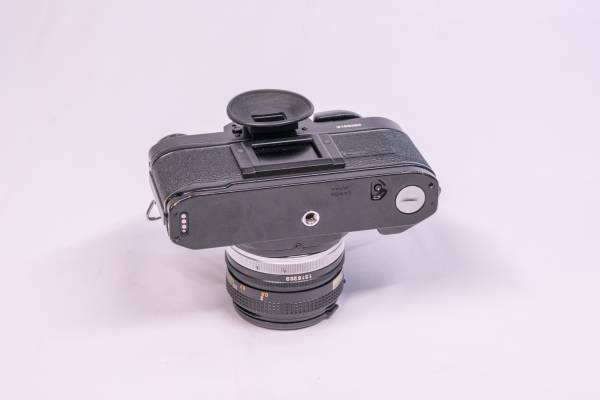 This was my first analog camera purchased from World of Photography (Columbus, OH). Wear typical for age of camera. Battery working and light meter operating within specifications. Has original Canon viewfinder eye cup.