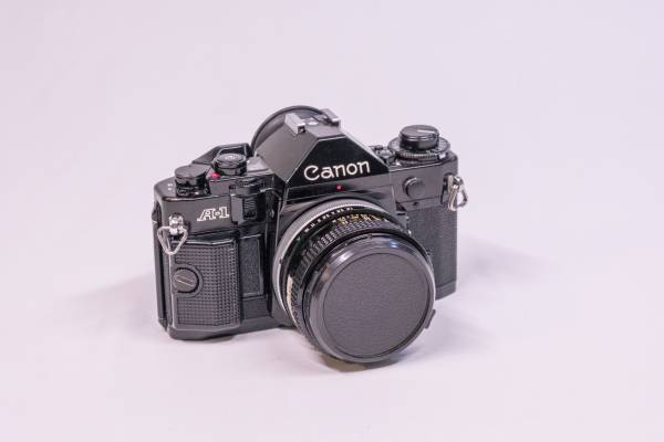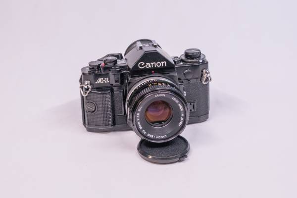1983 Canon A-1 35mm Film Camera (black) with Canon FD 50mm 1:1.8 S.C. lens and Canon Power Winder (Model A)