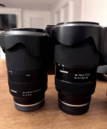 charger, extra battery, two camera bags, and two help guides for Sony Alpha 7iv. The camera includes a Sony 35mm F2.8 lens and additionally comes with Tamron 28-200mm F2.8 lens and Tamron 28-75mm...