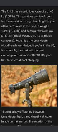LensMaster Gimbal Head RH-2 - Hand Made in the UK