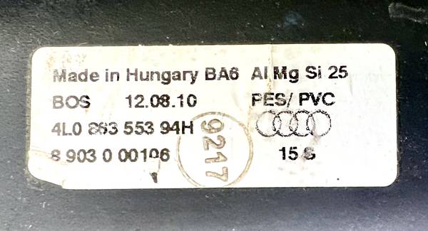 Made in. Hungary BA6 AIMg Si 25 BOS 12.08.10 PES / PVC