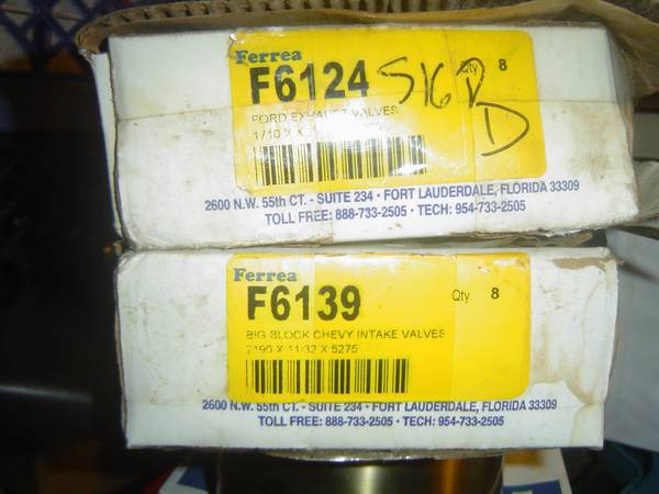 FORD 351 CLEVELAND - FERREA - STAINLESS STEEL VALVES --- INTAKE AND EXHAUST = $200 ----------- INTAKES = 2.190 X 11/32 X 5.275 ------- EXHAUSTS = 1.710 X 11/32 X 5.060 ---INTAKES SHOULD FIT BBC -...