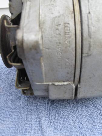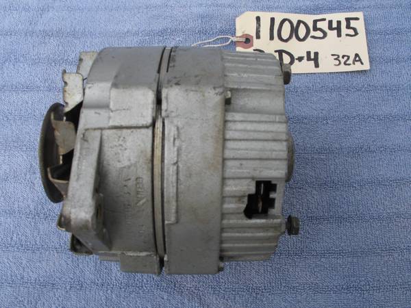 Used GM Delco-Remy Alternator, casting #1100545. Unit is dated 3*D*4 (April 4, 1973). 32 Amp - 12V - NEG. Unit spins freely, but should probably be rebuilt. May be correct for Buick automobiles. One source shows correct for 1969 through 1975 Chevrolet Camaro, Chevelle and Nova. Tests good, but bearing makes noise. VGC! $35. Will ship!