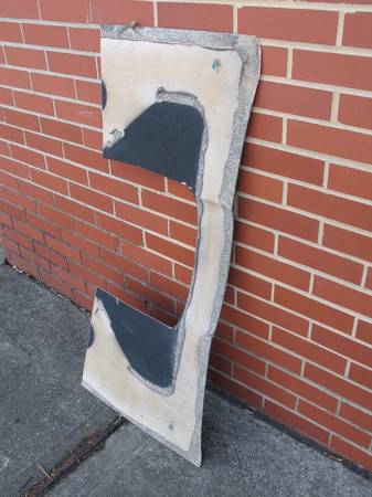 Original 1963 Corvette partial factory hood skin, in used condition. Hood skin had a hole cut out for a scoop/blower, then someone out of Texas resto-modding a split window coupe bought the inserts where the hood grilles/cookie sheets mount, leaving what you see here. Good for repairing sections of your early 1963 1964 1965 C2 Corvette, or use it to make bonding strips. Hood skin measures 42-1/2" wide, by 18" long, and weighs almost 4 lbs. Original GM yellow fiberglass hood skin in fair/poor condition. $35. Will ship!