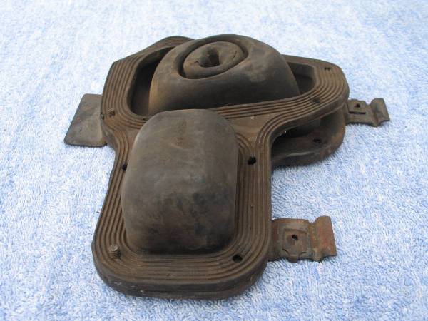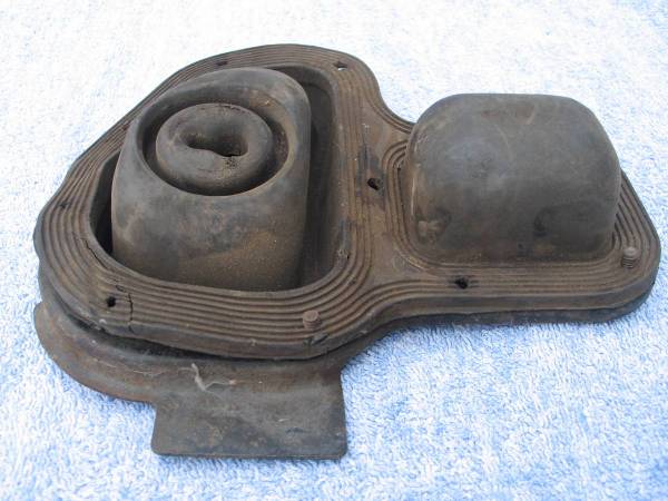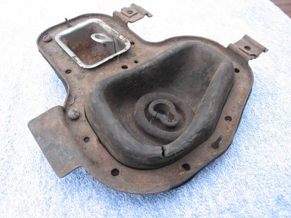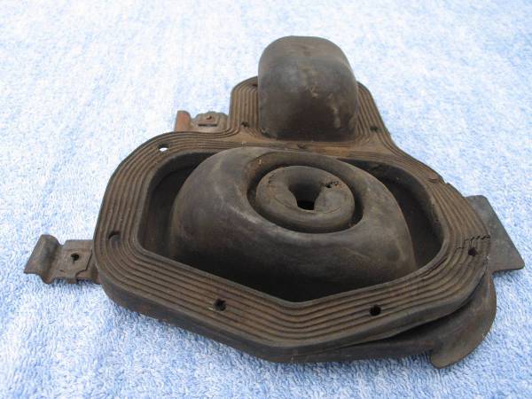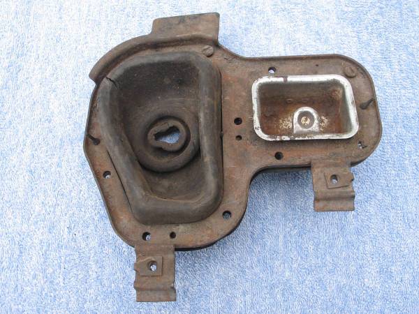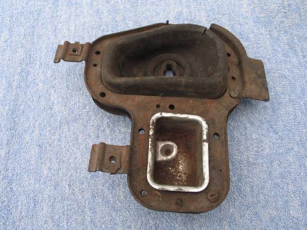 Factory original 1963 Corvette shifter boot retainer plate, in used condition. Correct for 1963 Corvette convertible or split window coupe. Retainer has surface rust, but appears straight and solid with nice mounting points that are not egged out. Rubber shifter boot is very pliable, but has a few cracks and cuts, which can be seen in the photos. Ashtray shows oxidation, but does have "AAC" stamped on the side. Retainer plate has a "W" stamped on the top side. Bottom side of the rubber shows, "FK 10". Good overall condition! $75. Will ship!