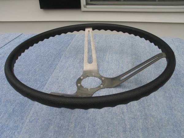 1963 Corvette reproduction steering wheel in black. Barely used with great grain and very nice stainless. Wheel is 16" end to end and 4" deep (top of wheel to countertop when laid flat). $125. Will...