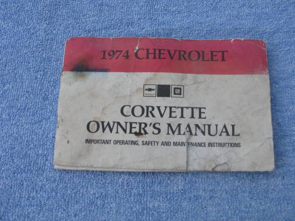 Original 1974 Chevrolet Corvette Owner's Manual in used condition. GM part #ST 310-74. Published by GM/Chevrolet and is in paper format. This manual provides information specific to the Chevrolet Corvette model from 1974, offering guidance on operating and maintaining the vehicle. Manual shows ripped pages, heavy water stains, ink marks, color bleed, folded over pages. The front cover has separated from the rest of the manual and the back cover is missing. Fair condition! $12. Will ship!