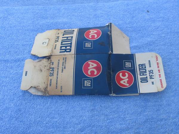 Original GM AC oil filter box in used condition. Box shows ONE PF35 6438384. Perfect for garage art or to house your original AC oil filter. A little weathered but still good patina! $5. Will ship!