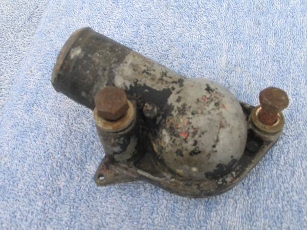 Original 1965 through 1972 GM aluminum thermostat housing in used condition. GM part #3877660. Correct for Biscayne, Camaro Chevelle, Corvette, El Camino, Impala, Monte Carlo, Nova, etc., with the 302, 327, 350 396, 402, and 427 Engine. Includes attaching bolts - Short bolt has a head marking of "RS" over a "C". Long bolt has a head marking of "TR". Good condition! $20. Will ship!