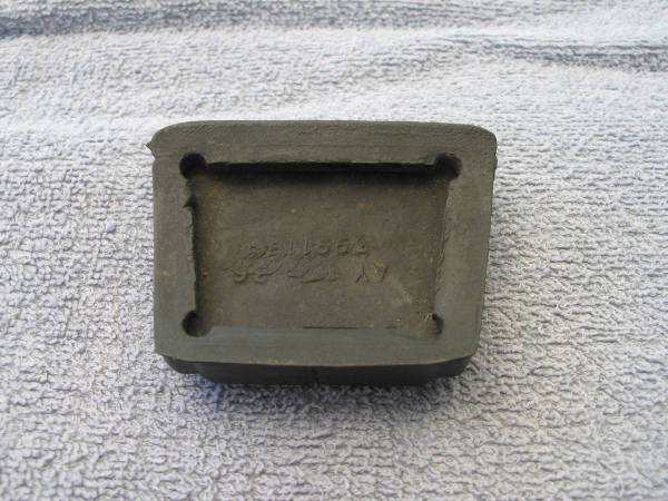 New Old Stock 1971 through 1975 Chevrolet parking brake pedal pad cover, in new condition. GM part #3991165, is molded on the back. Correct for 1971 1972 1973 1974 and 1975 Chevrolet Impala, Bel Air, Caprice and Biscayne. Also correct for 1975 Chevelle, Malibu, El Camino, Monte Carlo and Laguna. The black rubber is supple, with no cracks. No original box or wrapper. NOS! $10. Will ship!