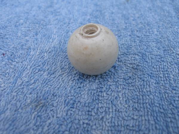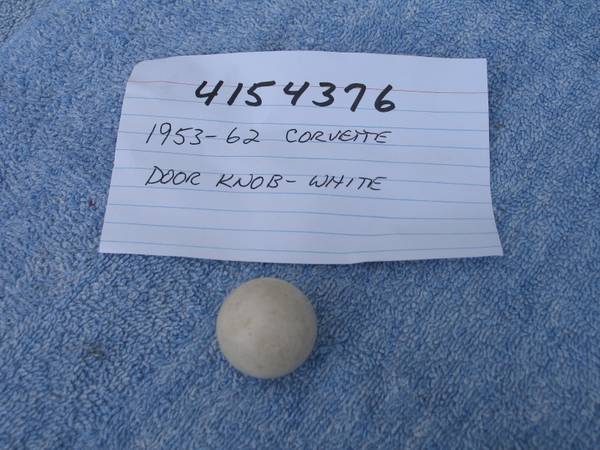 Original 1953 through 1955 Corvette door panel open lever knob, in used condition. GM part #4154376. Factory knob is original ivory and not painted. Knob is 1-1/8" in diameter. The inside of threaded hole is ivory colored as well. Threads look a little rough, but still usable. Minimal scratches on the outside. Correct for 1953 1954 and 1955 Corvette. Good overall condition! $20. Will ship!