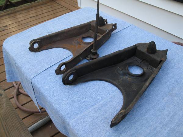 Original pair of 1953 through 1962 Corvette Lower Control Arms A-arms in used condition. GM parts #3708197 (LH) and #3693470 (RH). Correct for 1953 1954 1955 1956 1957 1958 1959 1960 1961 and 1962 C1 Corvette. Metal is in good shape with light pitting; nothing damaged or bent that I can see. $100 for both. Will ship!