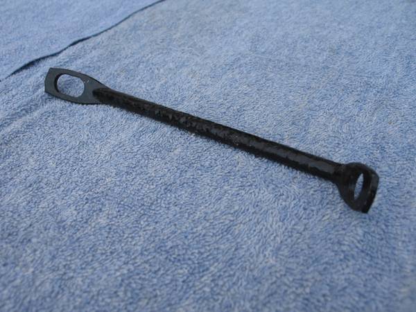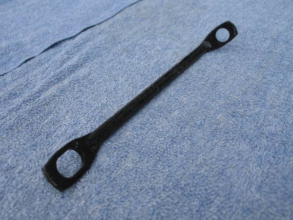 1968 through 1973 Corvette rear bumper center brace inner rod, in used condition. GM part #3935689 and #331864. Brace looks like it was pitted, then painted over. OK for a driver, or will need blasted and painted. Correct for 1968 1969 1970 1971 1972 and 1973 Corvette. Both mounting holes look good. $10. Will ship!