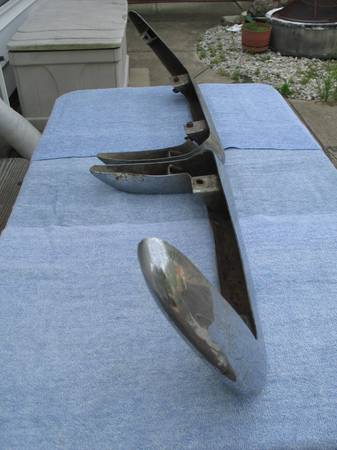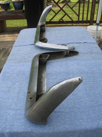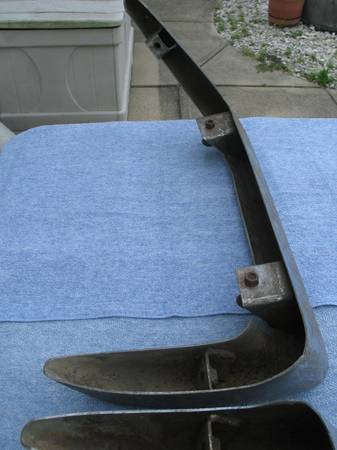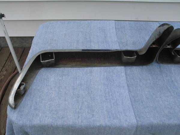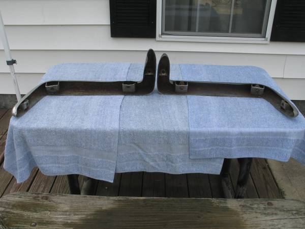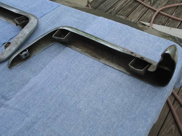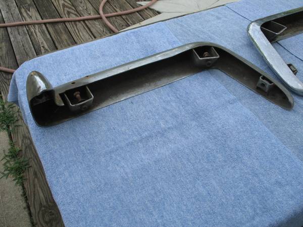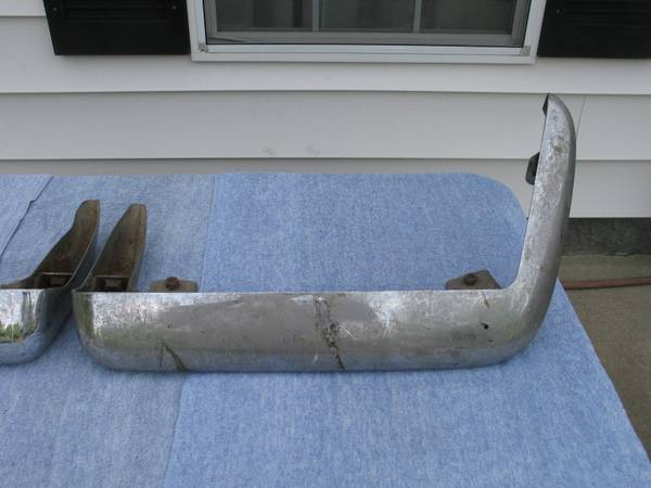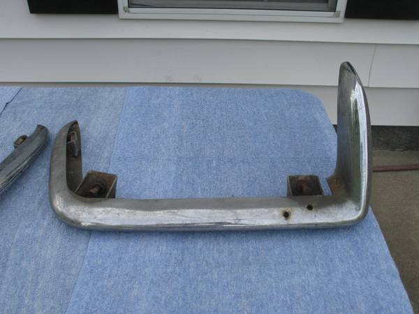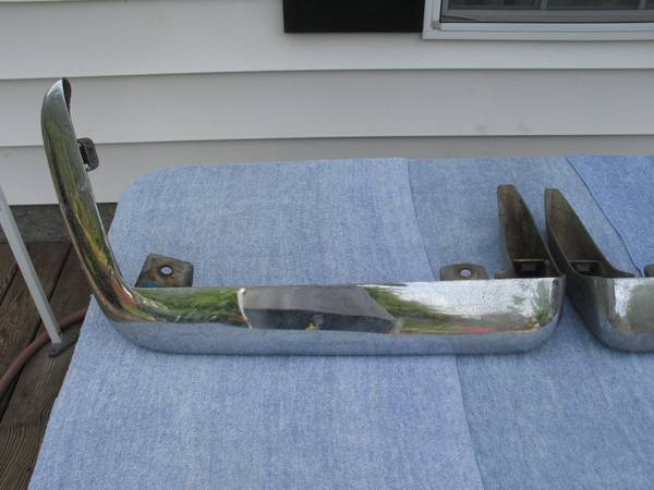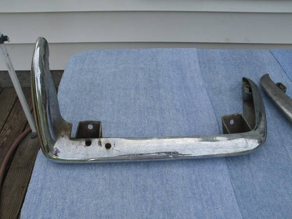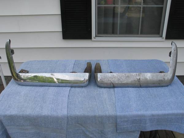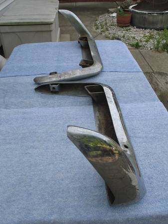 Original 1968 through 1973 Corvette chrome rear bumpers in used condition. GM part #3922069 (LH) and #3922070 (RH). Drivers side bumper is slightly bent on the lower edge. Passenger side bumper has two (2) pin holes on the top (see photos). Both bumpers show pitting and dullness in the chrome. Original GM bumpers, perfect for a driver or cores to be re-chromed. Correct for 1968 1969 1970 1971 1972 and 1973 Corvette. Good overall condition. $75. Will ship! (might be expensive).