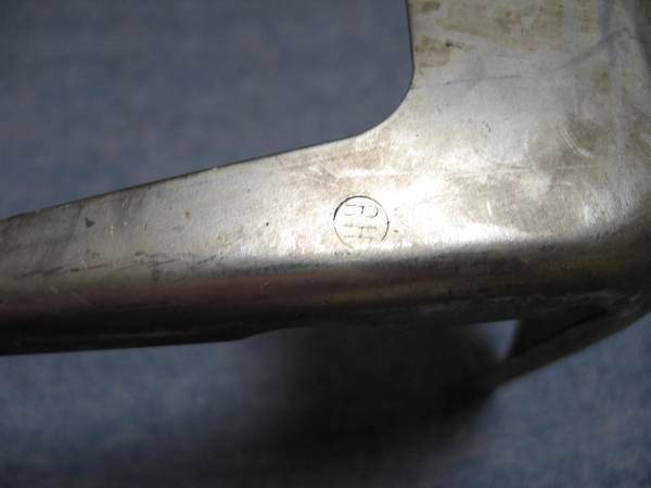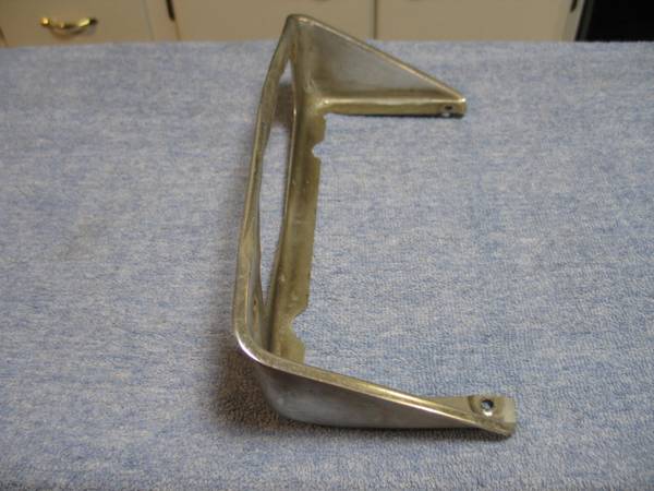 1963 through 1967 Corvette stamped aluminum rear license plate bezel in used condition. GM part #3797486. Correct For 1963 1964 1965 1966 and 1967 Corvette. Rear license plate bezel is made of stamped aluminum and features the "RH" stamp on it. Mounts on the rear lower valance panel. Bezel shows oxidation and a few bends, which may or may not clean up. No cracks that I can see. All mounting holes look good. Decent condition for a driver. $25. Will ship!