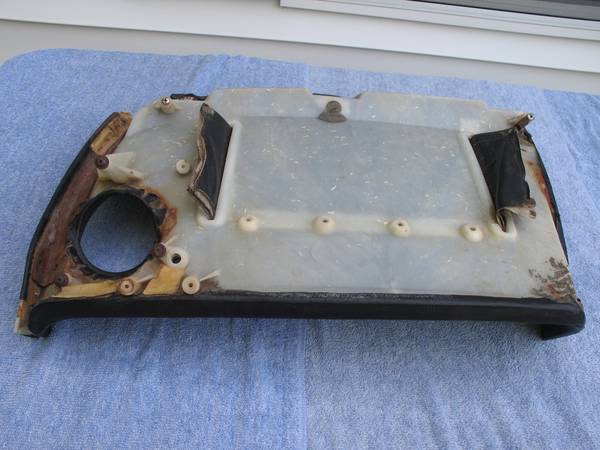 Original 1970 through 1976 Corvette lower dash panel pad with map pocket, in used condition. Factory GM part #9750557. Correct for 1970 1971 1972 1973 1974 1975 and 1976 Corvette coupe or convertible, with the 350 or 454 engine. Color is black, but could be dyed to match your interior. Weighs 5.0 lbs. Nice! $175. Will ship!