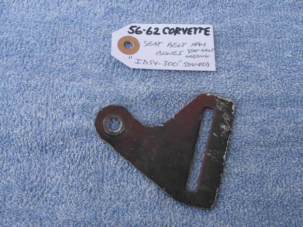 Original 1956-1962 Corvette seat belt anchor bracket, or "Ham Bone". GM part #3731133. Stamped, "ID54-300. Correct for 1956 1957 1958 1959 1960 1961 and 1962 Corvette. Slightly bent, but still good...