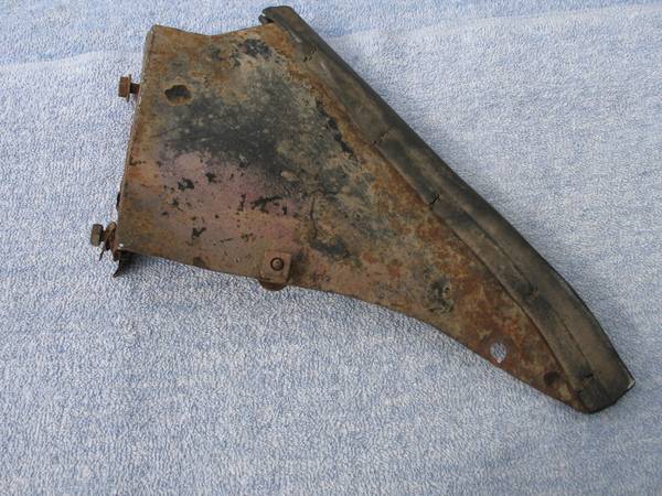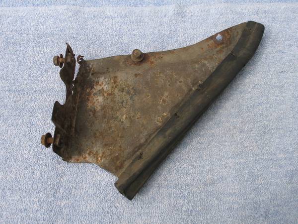 Original 1968 through 1974 Corvette RH (passenger side) outer metal splash shield in used condition. GM part #3914340. Correct for 1968 1969 1970 1971 1972 1973 and 1974 Corvette. Shield has rust-through on the side edge but factory correct mounting bolts and rubber channel with staples. Fair condition! $15. Will ship!