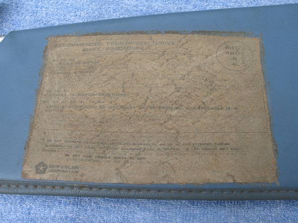 Original pair of 1981 through 1993 Dodge Ram 4x4 Pickup Truck Van Ramcharger Sunvisors, in used condition. Facrory sun visors are light blue in color, and have the following part numbers cast into the mounting hardware: "3494844 * 4084916 * 73138". Correct for 1981 1982 1983 1984 1985 1986 1987 1988 1989 1990 1991 1992 and 1993 Dodge Ram D150 D250 D350 Pickup, Van, Truck or Ramcharger. Four Wheel Drive Operating Instruction Sticker is faded, and one visor has a small tear on the fold. Good overall condition! $20 for the pair. Will ship!
