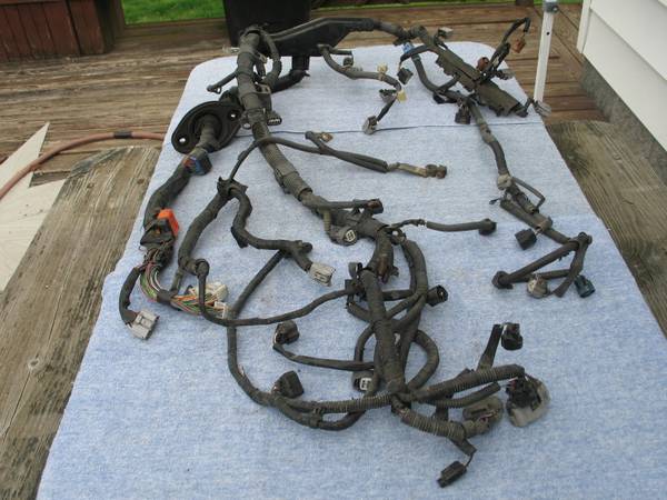 1999 through 2003 Lexus RX300 engine wiring harness in used condition. Will fit 1999 2000 2001 2002 and 2003 Lexus RX300 and possibly the 2001 2002 and 2003 Toyota Highlander with the 6-cylinder engine. Very good condition with no cracks, repairs or damage that I can see. Includes a used coil pack in good condition. All removed from a 2002 Lexus RX300. Very good condition! $45. Will ship!