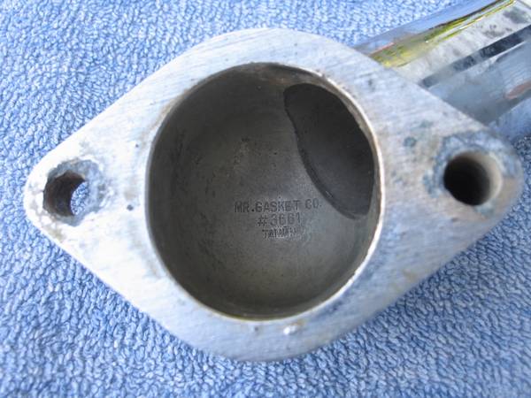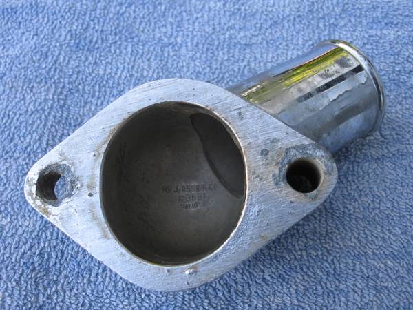 Original Mr. Gasket Chrome Water Neck in used condition. Part #3661. Will fit all Chevrolet 305 and 327 small block engines for model years 1966 1967 1968 1969 1970 1971 1972 1973 1974 1975 1976 1977 1978 1979 1980 1981 1982 1983 1984 1985 1986 and 1987. Thermostat cover shows general wear with slight surface pitting and some discoloration of the chrome. All mounting points look good. Made in Taiwan. Good condition! $10. Will ship!
