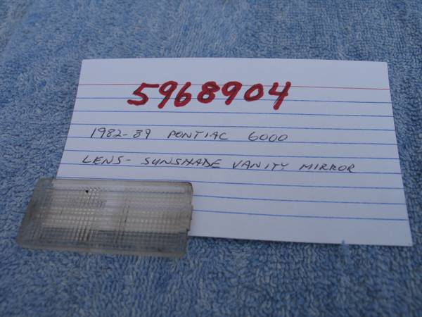 Original 1982 through 1989 Pontiac 6000 Sunshade Vanity Mirror Lens, in used condition. GM part #5968904. Correct for 1982 1983 1984 1985 1986 1987 1988 and 1989 Pontiac 6000. No cracks or chips...