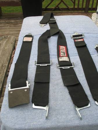 R.J.S. safety racing harness in used condition. SFI Spec. 16.1. Harness is black with 3" wide belts. Manufactured November 2003. All clasps and buckles seem to operate without issues. Very good condition! Update your seatbelts with confidence. Pro-Street, rail, buggy, dragster, hot rod, resto-mod, etc. Pictures speak for themselves! $60. Will ship!
