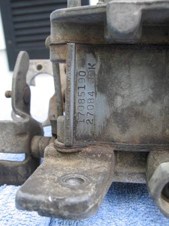 Original 1981 through 1987 Rochester Dualjet 210 2-barrel carburetor in used condition. GM part #17085190 JDK, with a date code of 270B4. Correct for 1981 1982 1983 1984 1985 1986 and 1987 Buick, Chevrolet GMC, Oldsmobile and Pontiac cars and trucks with the 231 V-6 engine (3.8L). Carburetor appears to be mostly complete; all linkage and choke assembly moves freely. Very good condition! $65. Will ship!