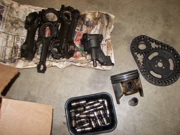 we have stuff left over after the restoration of our 57 belair, a 283 block 57 yr., crank, 2 barrel heads, new oil pan, 2 barell carb. on intake, original leaf springs, radio, clock, headers for 57 283, look at the pictures to see if we have something u are looking for. call dave at show contact info