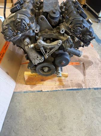 Up for sale is one used Pentastar 3.6 Engine I pulled from my 2013 Jeep Wrangler JK a few weeks ago. It has 230k miles on it. I had it start to overheat and then topped the fluids back off. Starts and runs fine but there was a lot of coolant just pouring from the back of the engine on top. I think the oil cooler line or housing is cracked? It seems to be way too much fluid to be a head gasket. Anyway, I'd planned on putting a lower mileage engine in soon anyway so I did that and now I have this one if someone wants it for parts or rebuild. Comes as it sits in the photos. No fuel injectors, fuel rails, wiring, alternator, power steering pump, AC compressor, etc. No upper intake manifold either. I want to point out the the upper bolt for both exhaust manifolds broke off in the block, this pictured in the last couple pics. I have a forklift at the pickup location so we can easily put it in your vehicle. No need to bring an engine hoist or anything. Any question you can text me.