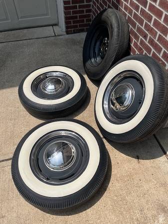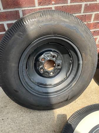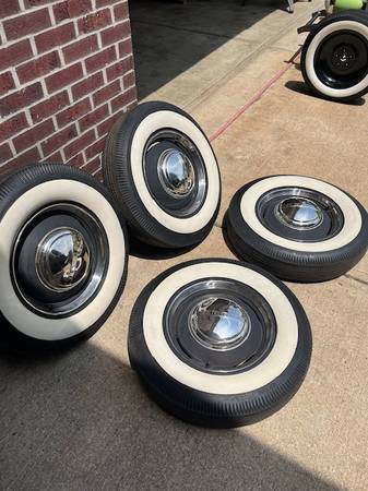 Coker Classic 3" Wide Whitewall Bias Ply Tires , New old stock with the nubs still on the tread, Wheels are early ford 16" with 5 on 5.5" bolt pattern and in good shape. Already mounted with tubes. Includes ford licensed stainless steel hubcaps and trim rings. Whitewalls have some minor stains and crazing. There are no cracks on the rubber. They have full tread. Great for Vintage hot rod project. These would cost about $2600. to put this together off the rack which would include Tires, Rims, caps&rings, mounting & balance, tubes, and Tax . My price is $1600. Thanks for LQQking!