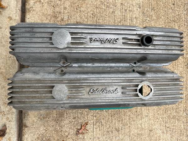 Edelbrock Classic Cast Aluminum Valve Covers for SBC Chevy SBC 283 305 327 350 400, #2 T They are in good shape with no cracks or chips and just need surface clean up. Sold as is... Local pickup or...