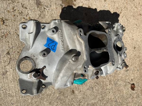 Edelbrock Small Block Chevy 2101 SBC Aluminum Performer Quad Intake Manifold Rat Hot Rod, No cracks, chips or repairs, threads good Sold as is. Local Pick up or buyer pays shipping. Thanks for...