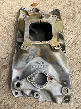 Weiand 7546 X-CELerator Intake Manifold Square Bore, Chevy, Small Block Hot Rod, All threads good with no cracks, one small corner chip under the carb that will not effect anything or be visible, Does have some fuel stains. Sold as is. Local pick up or buyer pays shipping.
