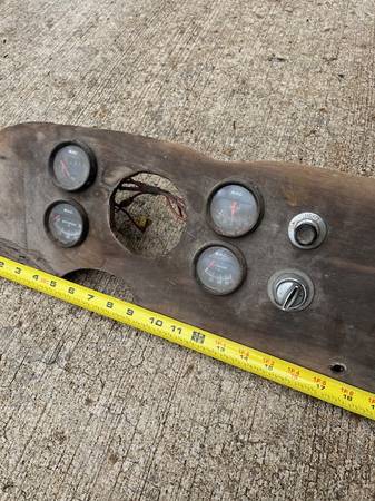 Wooden rat rod dash with some guages and ignition switch 36" wide, I do not know if guages are working and there is no key, Sold as is. Local pick up or buyer pays shipping. $50
