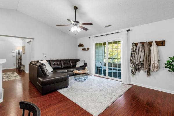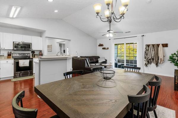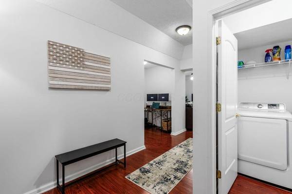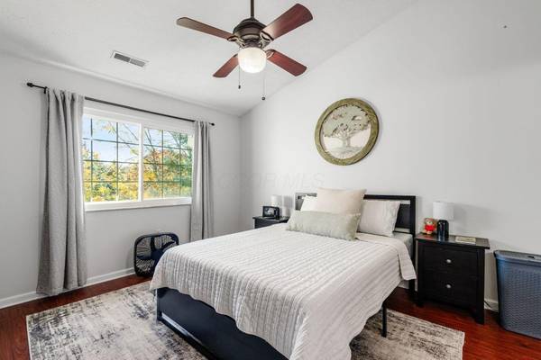 One story condo in immaculate condition. This condo features 2 large suites. Open floor plan with vaulted ceilings. Convenient location within walking distance to grocery, restaurants, entertainment within Georgesville shopping center. There is a balcony that overlooks the green space between buildings with a storage space. This unit includes a 1 car garage. Community includes pool and workout facility.