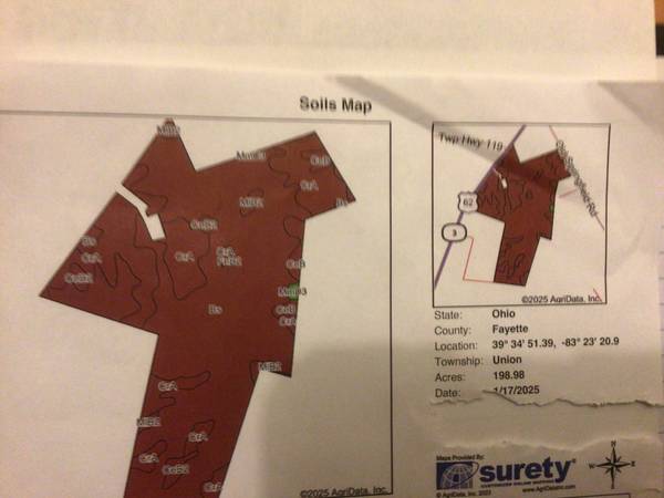 Includes driveway on route 62 and Home Site / Barn Lot. Visit the Fayette county Ohio website for an aerial view.