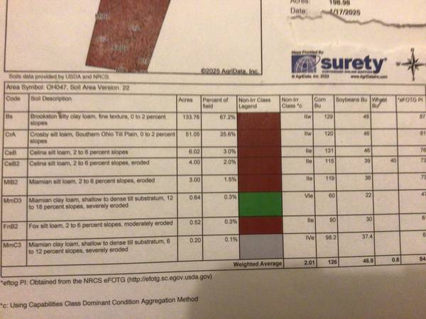 The new Survey image attached along with the soils map per AgriData. Almost exclusively tillable. Tile map included.