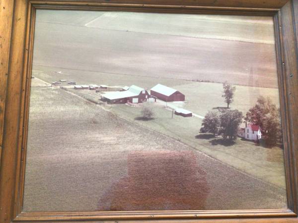 The "feature" photo is from June of 1980. It is not wholly accurate. The house was torn down around late 1986. A grain silo was built / added. The small buildings are gone. Both of the barns are still present.