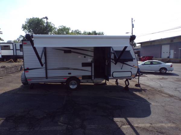 Front full-size bed, dinette, and bunks. Many extras including electric awning, window awning, power vents. Customized by previous owner to be sturdy and functional. See at Post's Traveland:...