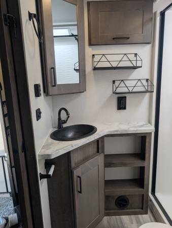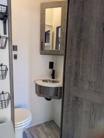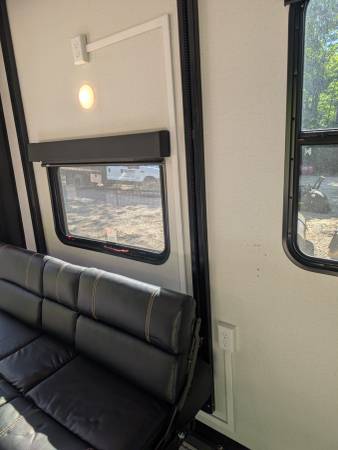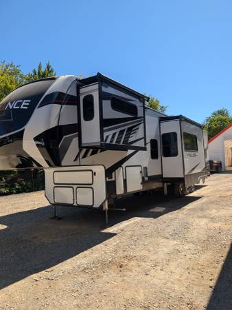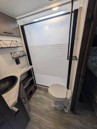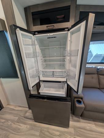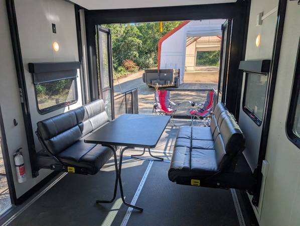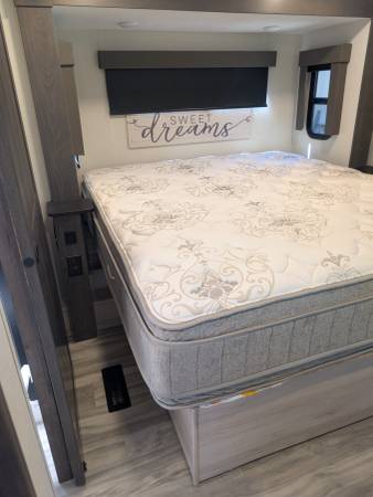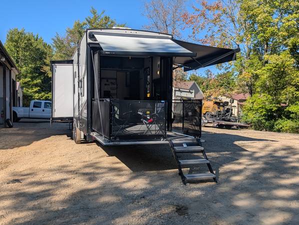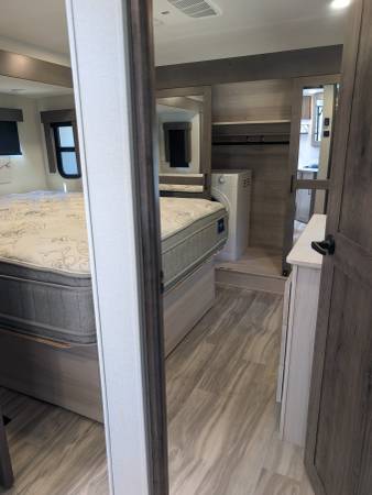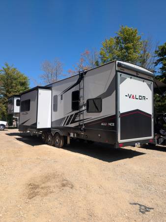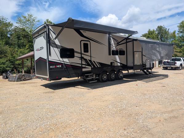 My family Dynamics have changed so we've decided to sell our pride and joy. We bought it new in FL at the Camper Show in 2023. I then drove it to Indiana to Alliance and had several things improved on the unit. They installed Two electric recliners in place of the couch, replaced the small butcher block counter fold up piece with a larger full size piece that matches the counter top. In the rear bath they installed a corner medicine cabinet in place of a mirror. I had them put doors on the two cabinets up top in the rear toy area. They installed the new washer and dryer.
